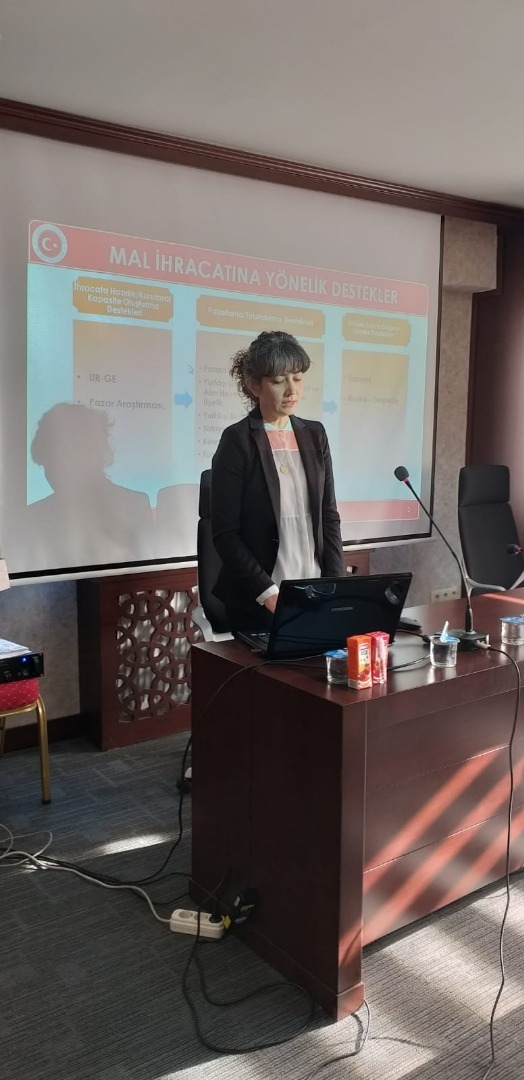 Seminerin ilk bölümünde Ekonomi Bakanlığı, Ticaret Bakanlığı İhracat Genel Müdürlüğü, Dış Ticaret Uzmanı Ayşe Banu Öncan tarafından ihracatta sağlanan devlet teşvikleri yardımlarına dair sunum yapıldı. Sunumda konu başlıkları olarak, Uluslararası Rekabetçiliğin Geliştirilmesinin Desteklenmesi, Pazar Araştırması ve Pazara Giriş Desteği, E- Ticaret Sitelerine Üyelik Desteği, Pazara Giriş Belgelerinin Desteklenmesi ve Yurt Dışında Gerçekleştirilen Fuar Katılımlarının Desteklenmesi konularında , içerik ve uygulamalarında yapılması gerekenler katılımcılarla paylaşıldı.